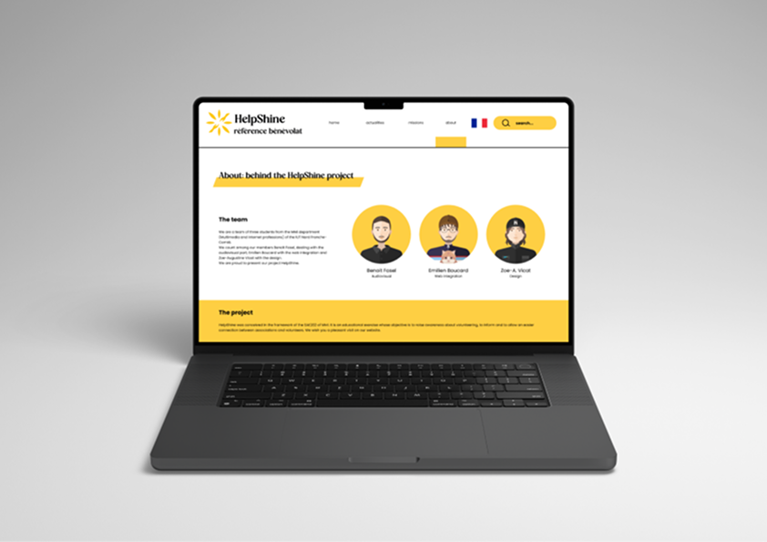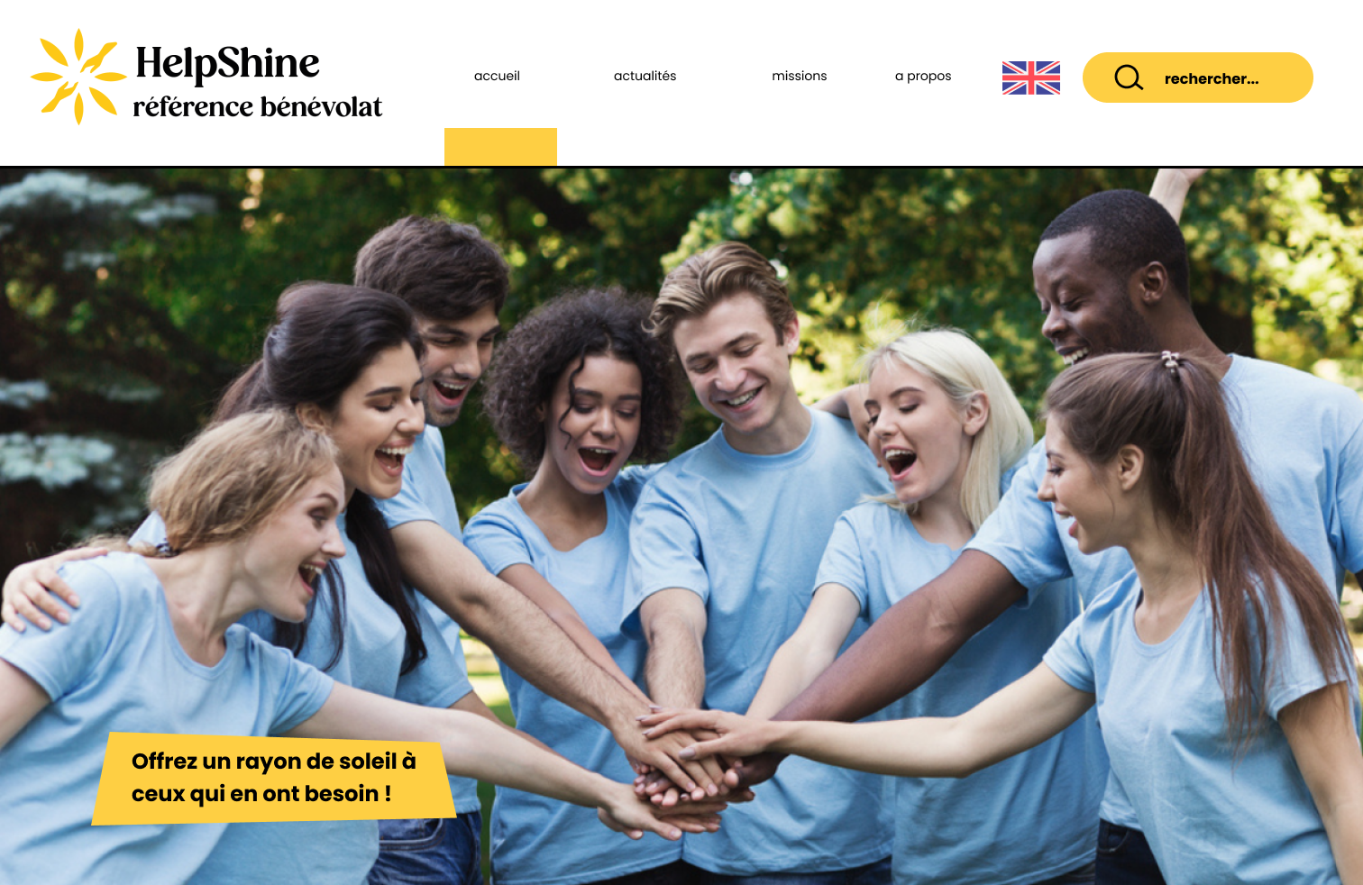 Projet réalisé dans le cadre d'un projet durant mes études, en groupe de 3, dans lequel nous avons créé une "marque" fictive qui se place comme le leader dans le domaine du bénévolat, du nom d'Helpshine. Ce projet a permis de mettre en évidence nos capacités à utiliser des CMS comme WordPress, notre capacité à monter des reportages et à créer des visuels impactants et cohérents avec notre sujet.